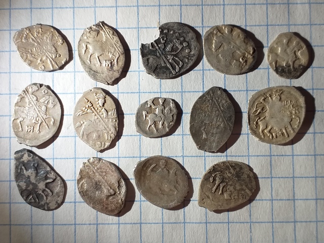 Всем злравия! Подскажите по монеткам, первая не пойму Алексей Михайлович, или МихФед, а вторая, утертая, не василия ли темного?