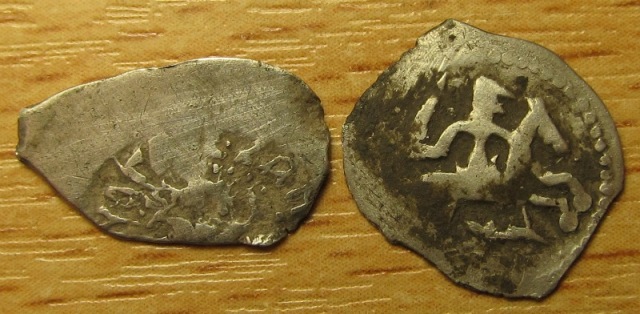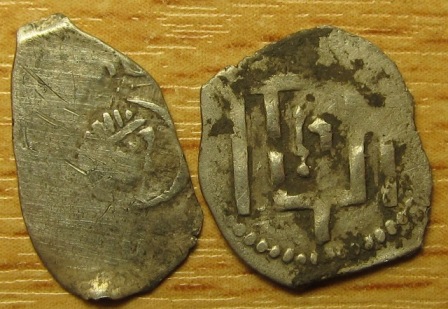 Здравствуйте! Прошу помощи в определении и оценке этих монеток. Вес указать не могу, нет весов. Размеры первой 11*7,5 мм, второй 15,5*9 мм.