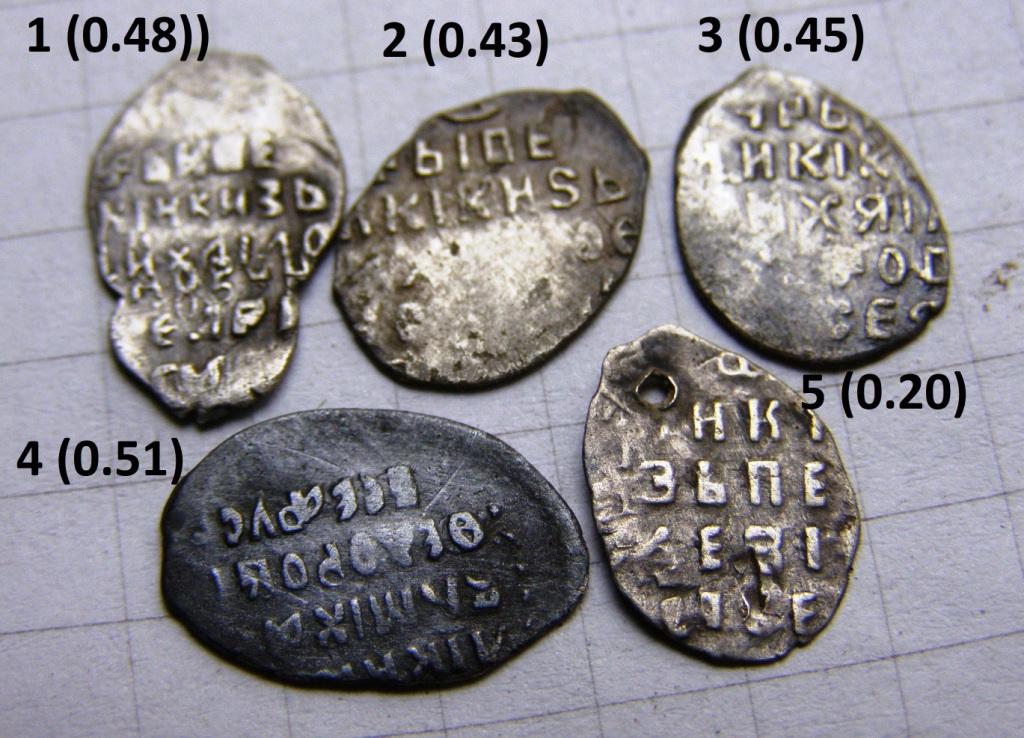 QUOTE(автолом @ Apr 29 2019, 09:04) доброго время суток. подскажите по монеткам вес "беленькой" 0.45г. вес "черненькой" 0.31гр. . с ув. Первая деньга Иван III СЛ, вторая копейка Михаил Федорович. -------------------- Интересует любая информация по денежной чеканке Василия Темного.