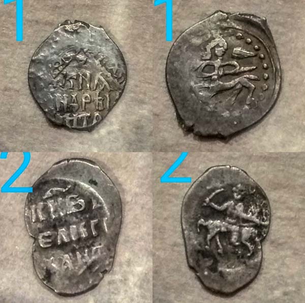 QUOTE(Nahalius @ Jul 29 2019, 00:29) Доброго времени суток. Помогите с определением и оценкой чешуи. 1.Можайск, Андрей Дмитриевич, ГП2 №3610С. 2.Мечевая копейка Грозного. -------------------- «Omnia homini, dum vivit, speranda sunt».