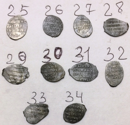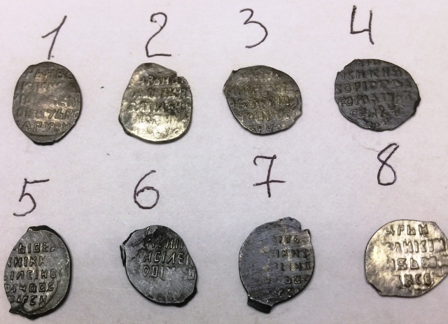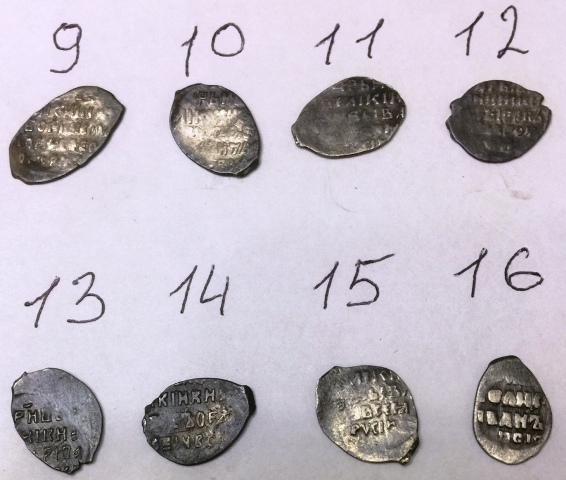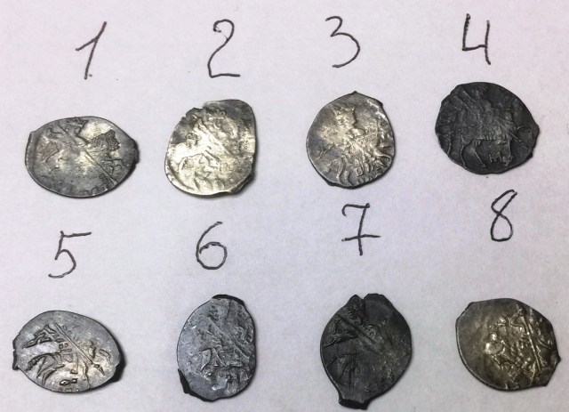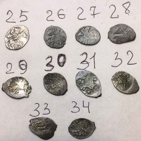 QUOTE(Zlatokydr @ Aug 26 2019, 23:22) 1. Федор Иванович, московская копейка, КГ 126. Простая. 2. Борис Годунов, московская копейка, КГ 173. Простая. 3. Михаил Федорович, московская копейка, КГ 340.Простая, очень частая. 4. Федор Иванович, псковская копейка, КГ 136. Простая. 5. Борис Годунов, псковская копейка, КГ 203. Простая. 6. Федор Иванович, денга, КГ 105. Простая. -------------------- Продажа бон мира и средневековых монет по фиксу (Орда, чешуя и др.) - смотреть в моих темах.