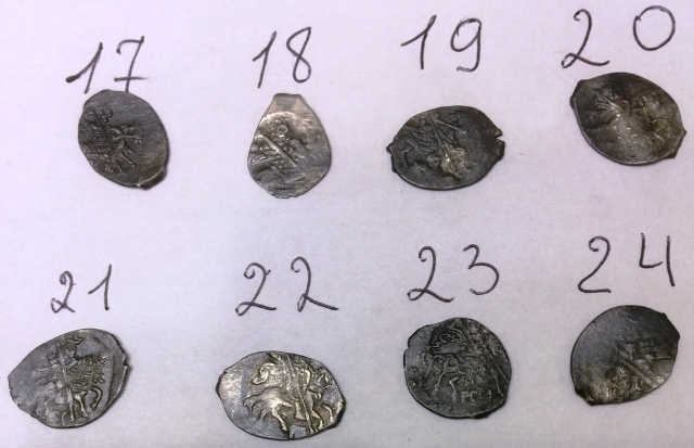 QUOTE(Zlatokydr @ Aug 26 2019, 23:22) 1. Иван Грозный, псковская копейка, КГ 93. Простая. 2. Новгородская копейка времени шведской оккупации Новгорода, КГ 325. Простая, но поинтереснее остальных, но состояние слабовато... около сотни или чуть больше. 3. Московская денга Василия III, ГП 3202 С (8-я степень редкости)... Состояние - никакое. Цена металла... 4. Новгородская копейка Грозного, КГ 87. Простая. 5. Московская копейка Михаила Федоровича, КГ 340. Простая. 6. Копейка Алексея Михайловича. Обычная. -------------------- Продажа бон мира и средневековых монет по фиксу (Орда, чешуя и др.) - смотреть в моих темах.