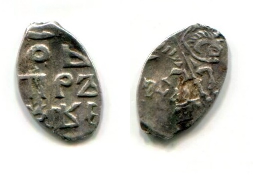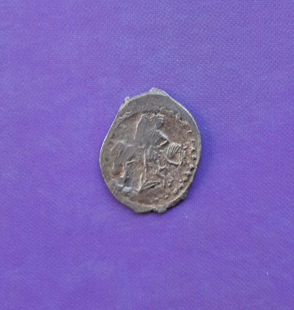QUOTE(фрок @ Sep 1 2019, 11:28) Будут предположения? Справа под конем чье-то лицо Монета Василия III Ивановича ...Московская денга. |