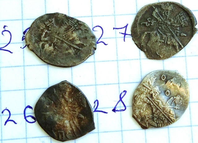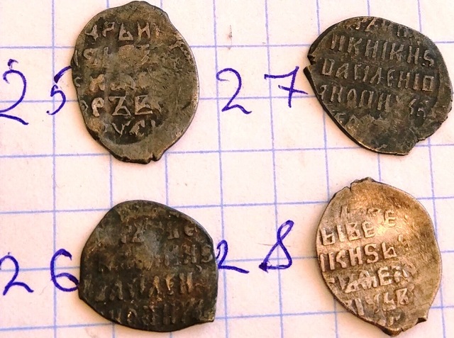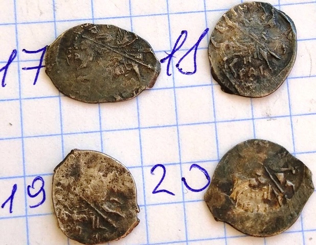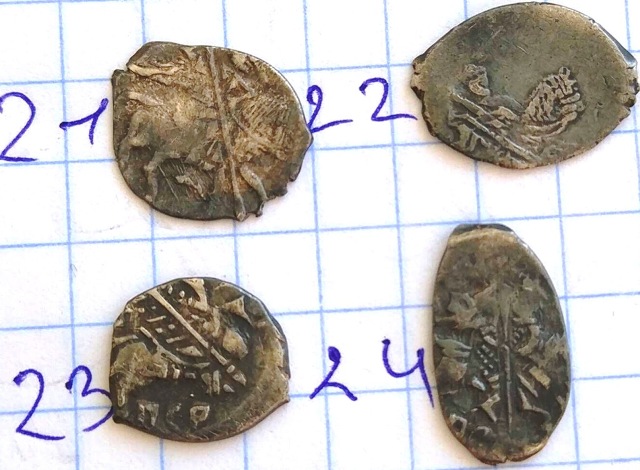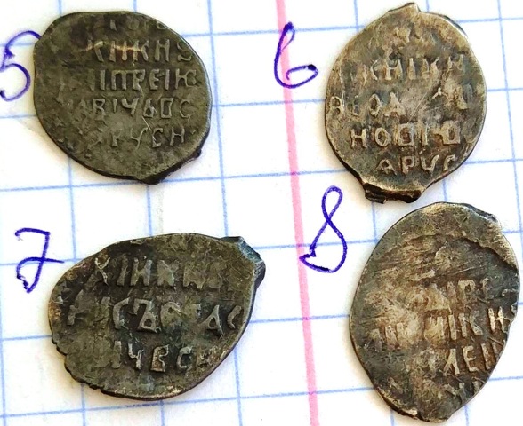QUOTE(Alex Eev @ Sep 1 2019, 23:00) Доброго времени суток! Подскажите пожалуйста,есть что нибудь стоящее +-? Раскладка будет по лотам. Заранее всем спасибо. Место находки Новгородская обл. Лот №1 1, 2. Московские копеечки Бориса Годунова, КГ 173(4-2), рядовые. 3. Московская копеечка Василия Шуйского, КГ 249(1*-1), рядовая. 4. Псковская копеечка Бориса Годунова, КГ 205(6-6), рядовая. 5. Новгородская копеечка Лжедмитрия, КГ 248(2-1), редкость IX - наиболее частая монета Лжедмитрия. 6. Новгородская копеечка Федора Ивановича, КГ 115(3-2),рядовая. 7. Псковская копеечка Бориса Годунова, КГ 193(1*-1),рядовая. 8. Новгородская копеечка Василия Шуйского, КГ 271(2-2), редкость IX - встречается пореже рядовых монет. Стоимость каждой монеты в районе 50 рублей, исключение монета №5 - порядка ~ 500 рублей. -------------------- Знаешь - говори, хочешь узнать - слушай