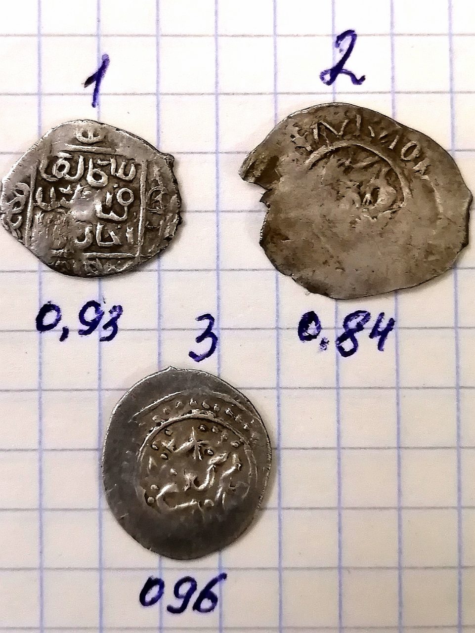 QUOTE(M.E.N. @ Sep 5 2019, 00:01) Помогите можно в личку, я в катологе не нашёл! В каком каталоге искали? Это что-то из Орды... что именно, не пойму... поискал в монетах Джанибека, не попалось похожего... Вижу, что чекан Сарая ал-Джадид, а что именно, не могу разобрать, видимо, сильно обрезан... Первое или третье фото поверните на 90 градусов против часовой стрелки... возможно, получится определить... Сообщение отредактировано Белгород_поиск: Sep 5 2019, 20:33 -------------------- Продажа бон мира и средневековых монет по фиксу (Орда, чешуя и др.) - смотреть в моих темах.