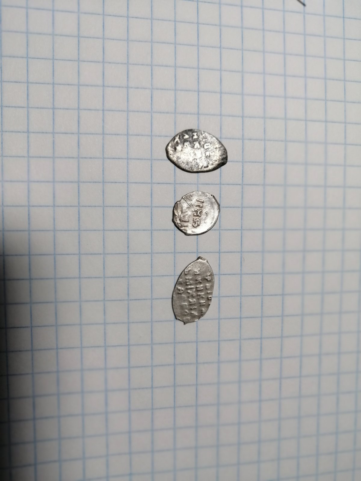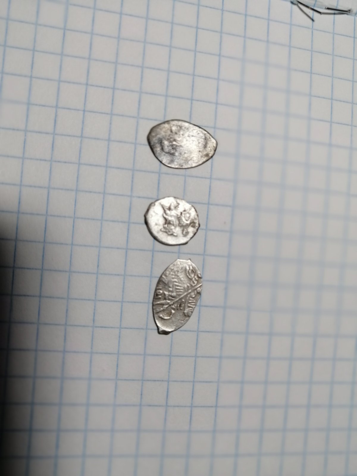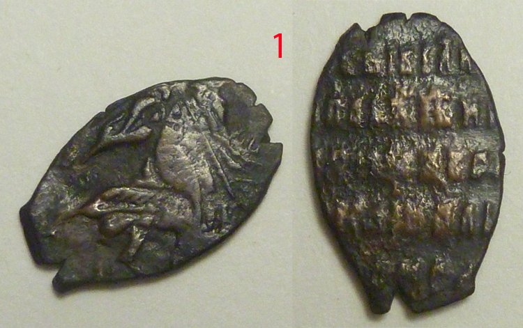QUOTE(Таргитай @ Sep 30 2019, 21:31) Подскажите кто разбирается. Копейки: 1 московская , Михаила Федоровича ; 2 Алексея Михайловича начала правления; 3 Петр, совместное правление; 4 Петр, единоличное правление , Старый двор. нет, все простейшее и не в лучшем виде. |