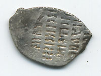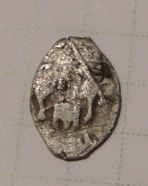 QUOTE(hhh @ May 15 2011, 15:52) Спасибо. А что обозначает буква К сзади лошади? Сие неизвестно. Предполагалось, что это может иметь отношение к имени мастера - резчика штемпеля или чиновника денежного приказа, ответственного за выпуск монет, или первую букву слова "князь", но ни то, ни другое, ни третье пока не доказано. Кстати, там еще над головой лошади буква Ч должна быть, просто на этой монете она не попала на поле. |