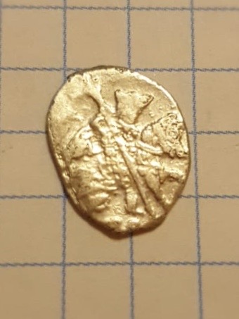 Добрый вечер. Прошу определить монетку. Размер 14 на 10мм. Вес, к сожалению, определить нет возможности.