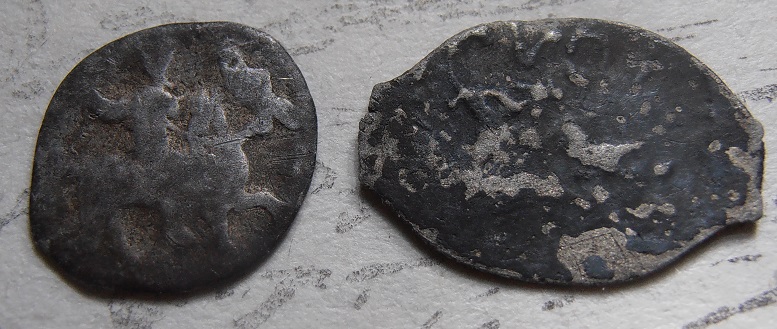 Здравствуйте,уважаемые форумчане правильно ли я определил монету одностороннее пуло НСВК описанное в ст.В.В. Зайцева под N 36 л.с. Воин,вооруженный мечом,влево, на голове-островерхий шлем.