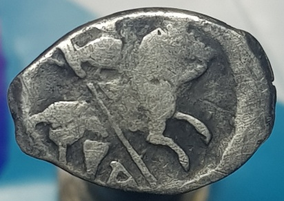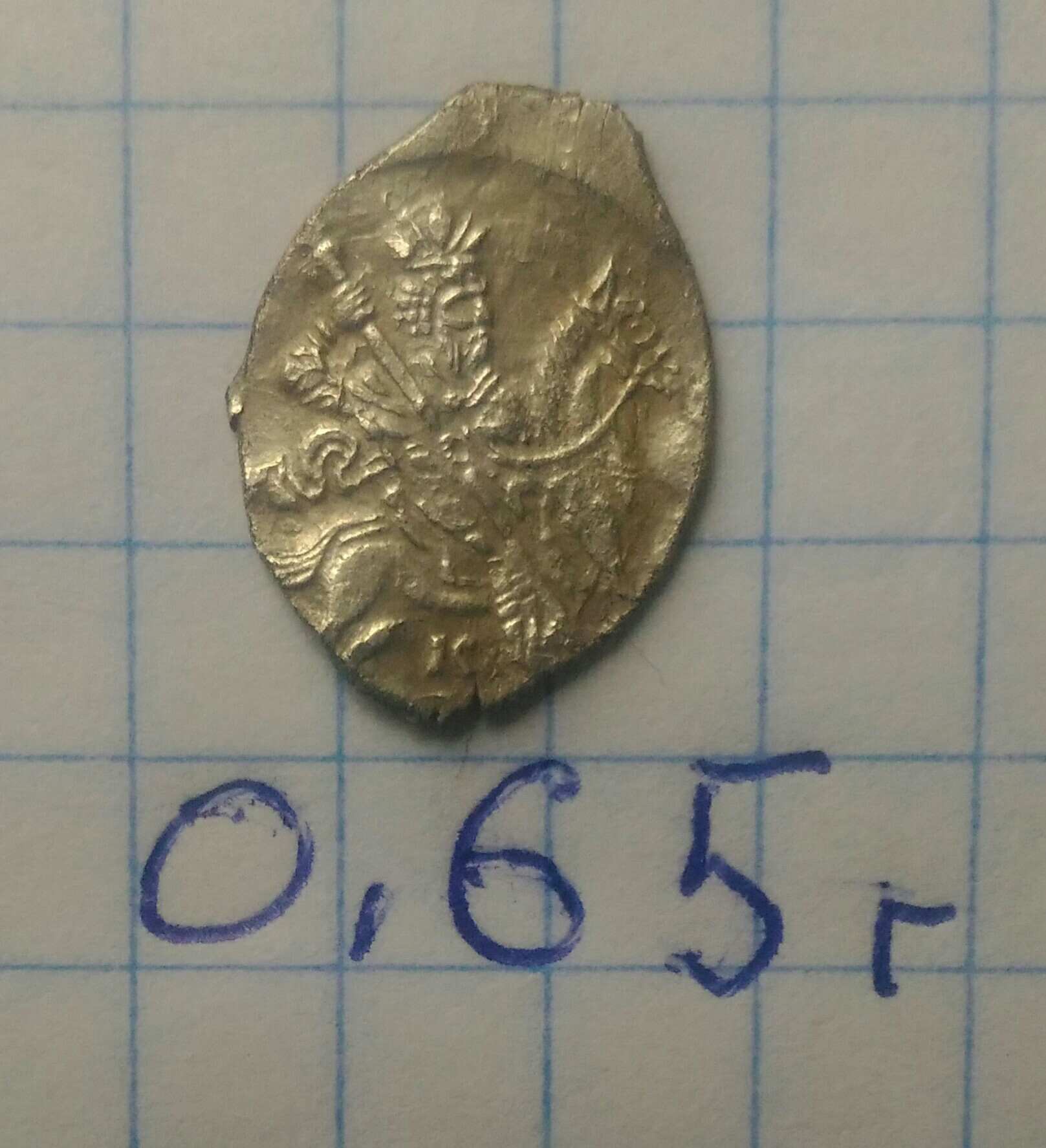 QUOTE(мурмудон @ Nov 3 2019, 14:17) добрый день.помогите определить и оценить чешуйку КГ90, копейка Грозного, частая, но состояние приятное, жаль буквы не влезли под всадником |