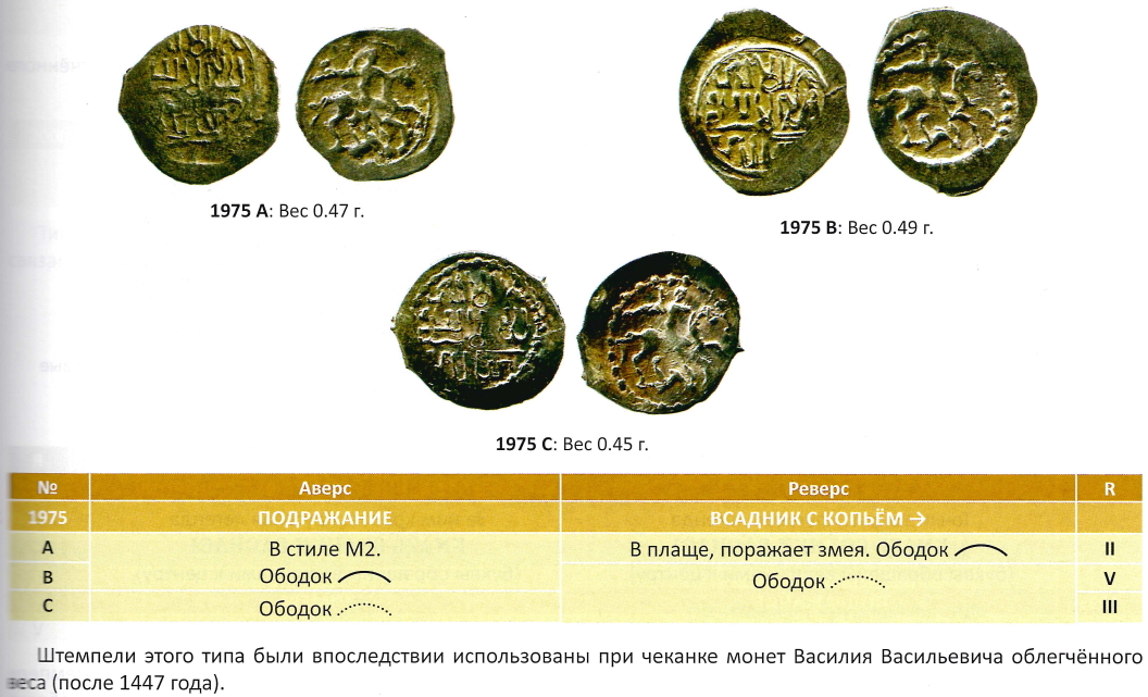 QUOTE(--Olga-- @ Nov 10 2019, 19:28) Добрый вечер! Помогите пожалуйста определить монеты. Доброго времени суток. По типам: 1. 2ГП2160С (денга ВКМ, Василий Васильевич) R8 2. 2ГП3157В (денга Серпуховского княжества, Семён Владимирович) R2 3. 2ГП1765В (денга ВКМ, Василий Дмитриевич/Василий Васильевич) R8 4. 2ГП1820Е (денга ВКМ, Василий Васильевич) R4 -------------------- Куплю комплексы чешуи 3х рублевой монетной стопы (от Ивана Грозного)