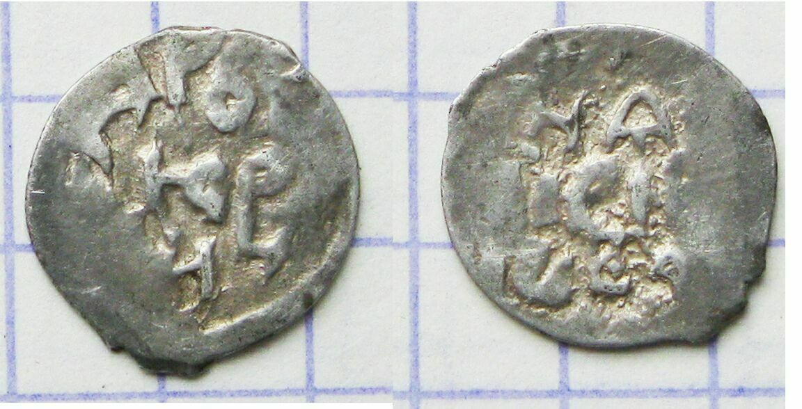 QUOTE(skas_ @ Nov 22 2019, 06:26) Здравствуйте. Просьба атрибутировать и оценить. Спасибо. Тверская денга Ивана III с варварской надписью,с двух сторон. В таком состоянии до 500 руб. |