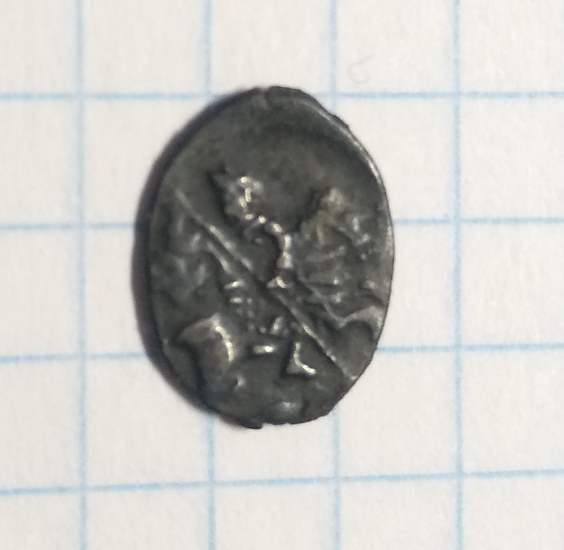 Тверской двор 1535-1547гг. Номер по каталогу: 71 Номер лицевого штемпеля: 13 Номер оборотного штемпеля: 16 Нормативная масса: 0,34 г. Знак: W Степень редкости: - И всё вроде сходится кроме нормативной массы. Она где-то 0,41-0,43, что не соответствует массе денги. Но это явно денга. Вложенные эскизы изображений |