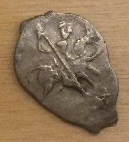 добрый вечер. помогите пожалуйста определить и примерно оценить монету. По КГ не понимаю. если можно имя правителя. Спасибо! Михаил Федорович, Псковский монетный двор, КГ 659, без степени редкости, 30 руб.+- |