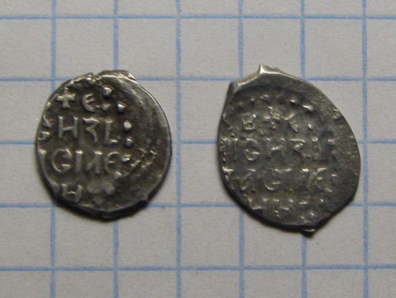 QUOTE(Hund Feld @ Dec 22 2019, 22:27) Приветствую уважаемых. Помогите, пожалуйста, определить две чешуи. С уважением Василий Дмитриевич Московский. Две денги "новгородского" типа. |