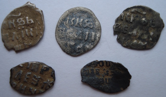 QUOTE(MishanK @ Dec 30 2019, 16:42) Всем добрый вечер. Помогите определить и оценить монетки. 1 - тверская деньга Грозного; 2,3 - трупы его же московских денежек; 4 - Петр, Кадашевский двор, 1702г 5 - Петр, деньга (немного реже всего прочего, но в таком виде не интересна). 1 и 4 - рублей по 50, 2,3,5 - близко к ц.м. |