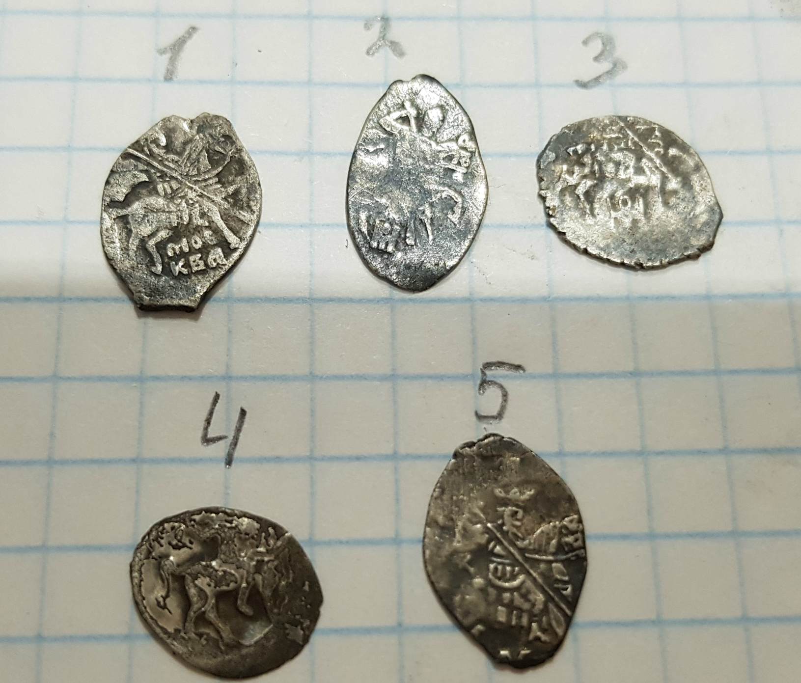 QUOTE(The Black Rider @ Jan 12 2020, 16:35) 1 - Федор, Псков, 2,3 - копейки Грозного, 4.5 - его же московские деньги, 6,7,8,9,10 - московские копейки Михаила. Все пока что простое. очередное большое спасибо ))) |