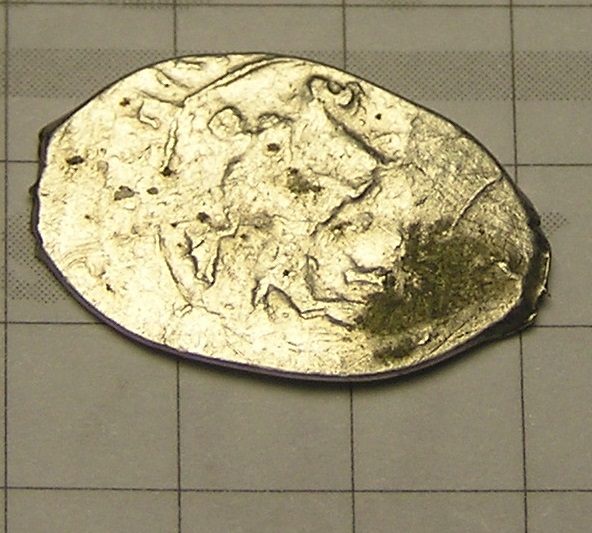 Добрый день, уважаемые форумчане! Попалась вот такая чешуйка. Не мыта, не чищена. Вес на китайских весах слегка гуляет, 0,12 - 0,13 грамма. Я так понимаю это полушка Михаила Фёдоровича. Сохран пока не почистишь, не поймёшь, но она не совсем убитая. Я так понимаю достаточно нечастая. Будет ли интерес на аукционе в таком состоянии и с какого старта?! С уважением, Александр.