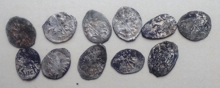 QUOTE(Ёжик Мими @ Jan 19 2020, 19:40) Дореформенных нет, обычные московского двора (первые две). Третья - денга Михаила Федоровича. -------------------- Продажа бон мира и средневековых монет по фиксу (Орда, чешуя и др.) - смотреть в моих темах.