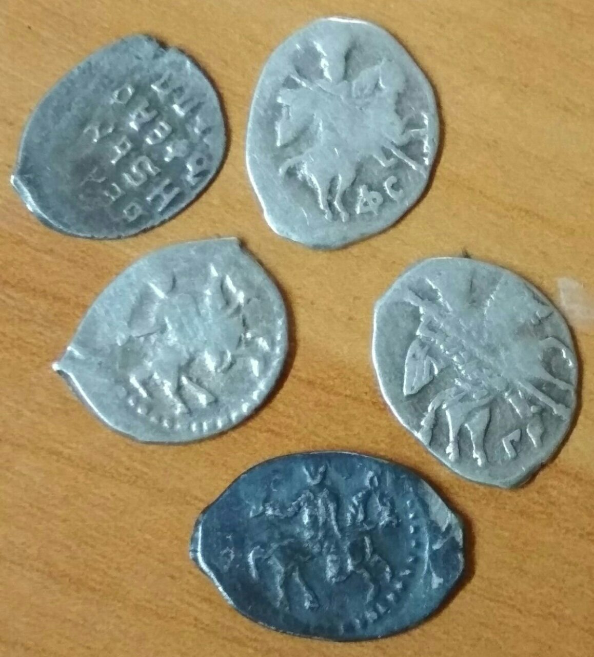 [quote=SKAUTT,Jan 27 2020, 21:06]Здравствуйте. Помогите определить и оценить. Вес на китайских весах 1-0,61 2-0,63 3-0,21 4-0,27 5-0,49 6-0,7 7-0,65 8-0,67/ Спасибо. [attachmentid=4876894] [attachmentid=4876895] [/quote] 1 - Федор Иванович, Москва, 5,8 - он же, Псков, 2 - Грозный, Псков, 7 - он же, Новгород, 4 - он же, московская денежка, 3 - Петр, 1700г, Старый двор, 6 - Междуцарствие/начало правления Лжедмитрия, КГ 236, она же ГКХ 263. Редкого ничего нет, по деньгам выделяется №6 - имхо, вокруг 1тр. остальное все от 20(за Петра) до рублей 50-70. |