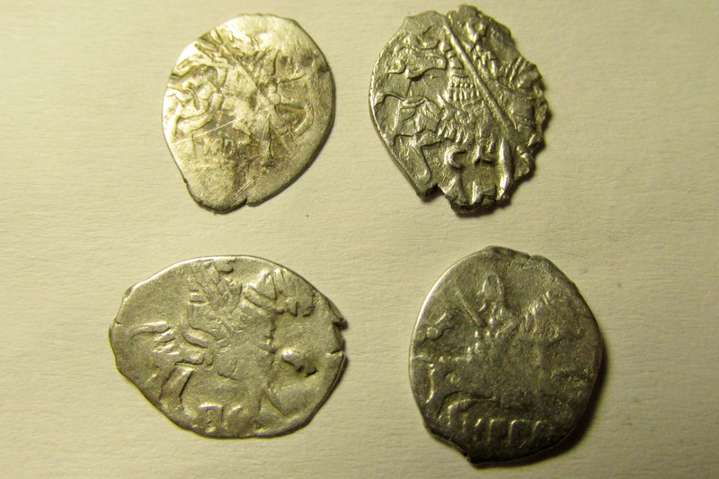 QUOTE(тиалан @ Feb 28 2020, 20:00) Добрый вечер ! Прошу также оказать помощь в определении ещё 4-х чешуек . Вес 0,37 0,47 0,41 0,46 гг. 1. Ярославская копеечка Михаила Федоровича, КГ 817(16-11), редкость VII. 2. Ярославская копеечка Второго Земского ополчения с именем Федора Ивановича, КГ 303(1-1), редкость VII. 3. Шведская подделка с именем Михаила Федоровича, КГ 709(1-3), редкость VII. 4. Новгородская копеечка Михаила Федоровича, КГ 643(1*-1), редкость VII. -------------------- Знаешь - говори, хочешь узнать - слушай