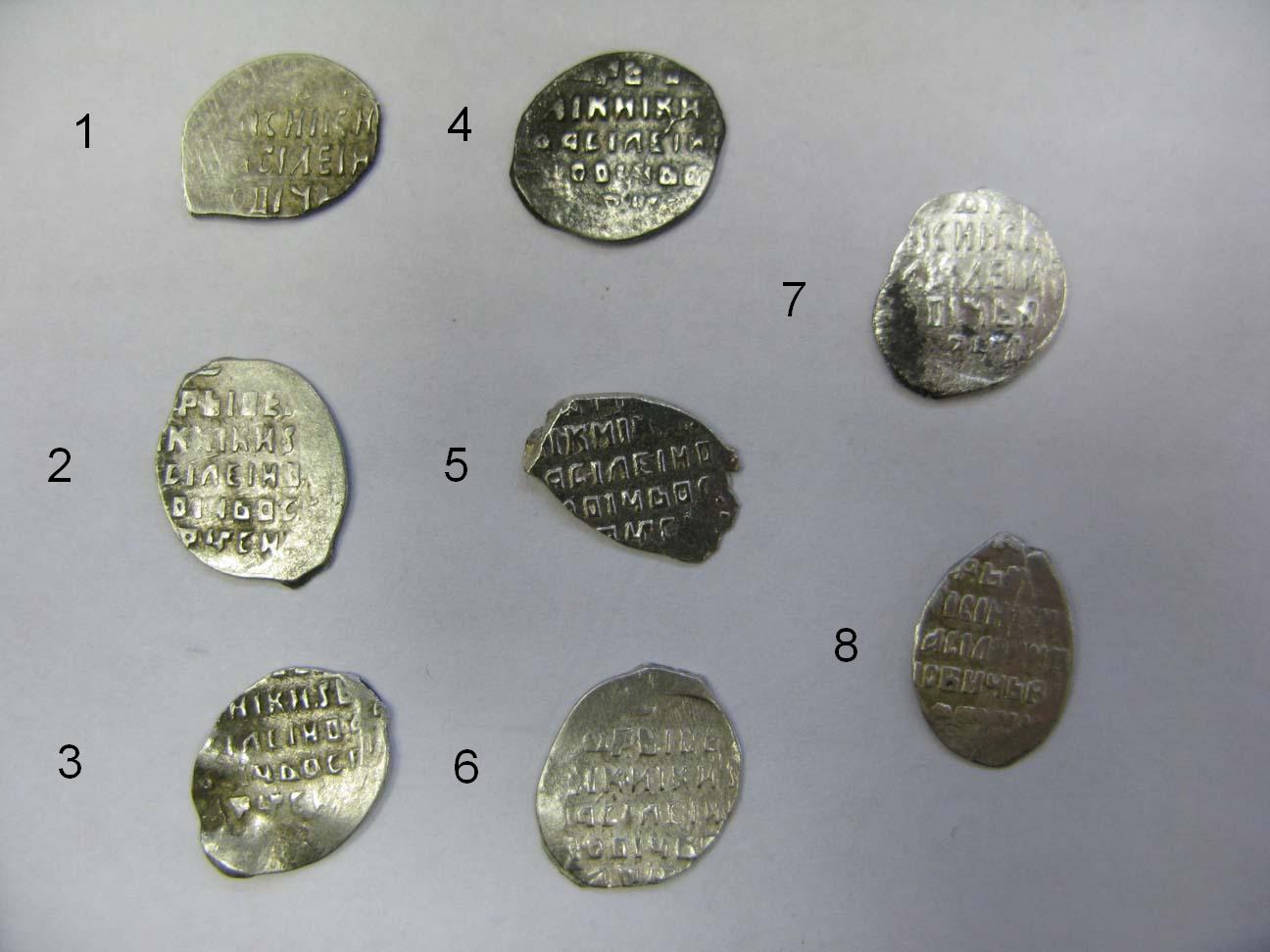 QUOTE(jummin @ Jun 2 2011, 17:52) Всем,здравствуйте! Прошу помощи по чешуйке.Сопутка 5 - 18 век.Вес 0.40 гр.Всадник без копья( по ходу денга). Василий III. QUOTE(фикс @ Jun 2 2011, 18:26) Это копейка или денга? копейка QUOTE(Yuriy_VA @ Jun 2 2011, 18:59) Помогите пожалуйста с определением и оценкой этих двух маленьких чешуек: Полушки Грозного и Фёдора Ивановича. Вторая редкая. QUOTE(holler @ Jun 2 2011, 19:21) Доброго времени суток! Подскажите. пожалуйста, что за чешуйки.Первый ряд, левая-медная. Заранее спасибо. 1,2 Алексей 3,4 Михаил. -------------------- новый каталог по царской чешуе