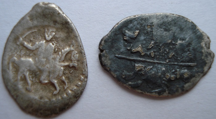 QUOTE(MishanK @ May 6 2020, 15:54) The Black Rider, спасибо. Еще пару монет на определение и оценку. Вес - 0,68 и 0,67 гр. 1. Мечевая копейка Грозного, КГ №73. 2. Псковская копейка Бориса Годунова ,КГ №198. Обе простые. -------------------- «Omnia homini, dum vivit, speranda sunt».