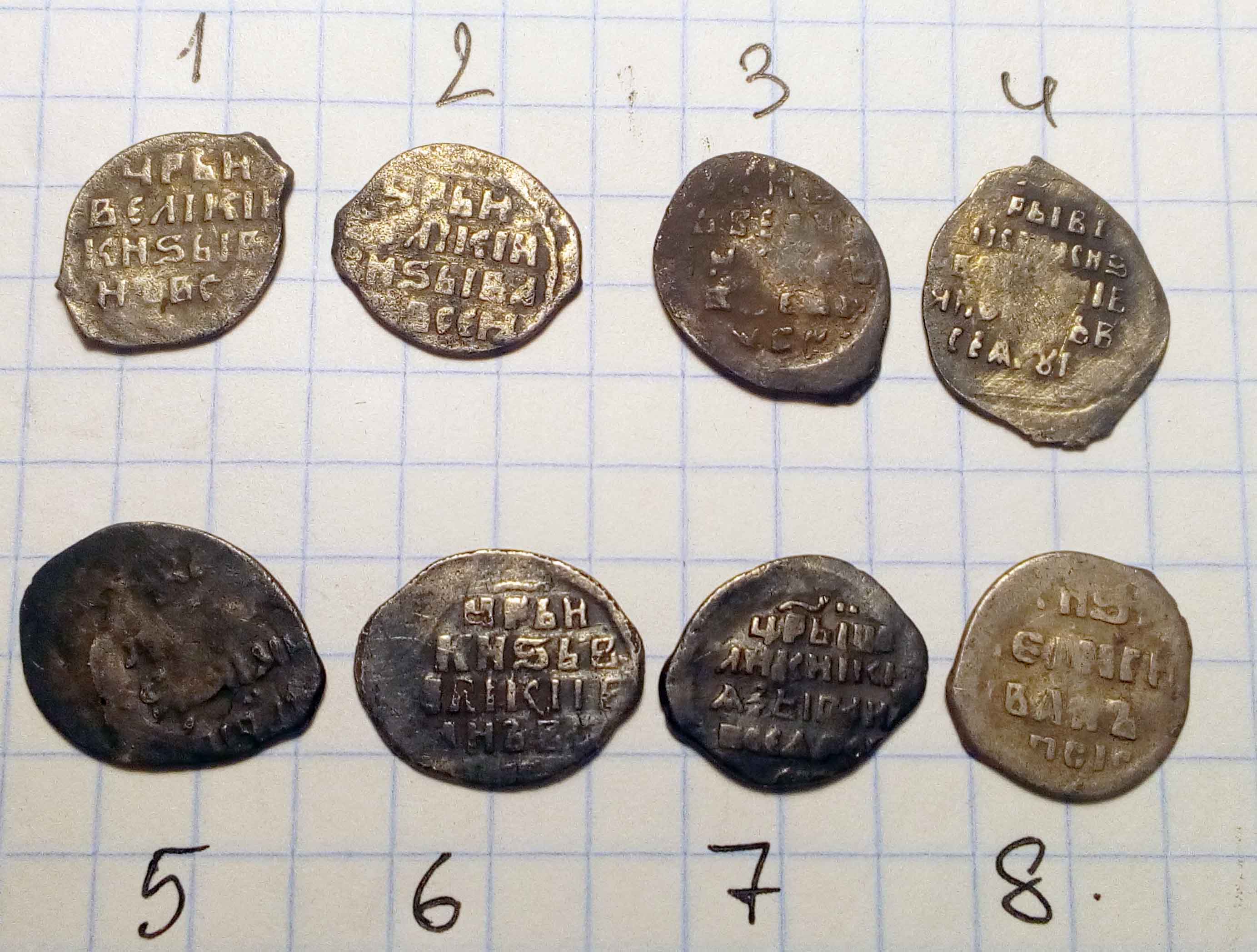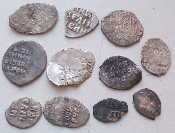 Добрый день, подскажите пожалуйста по чешуйкам, что есть что и по ценнику если можно. Псковская область. 2 - перештамповка судя по всему 1-Копейка Грозного 2,3 Копейки Петра I 30 руб/шт+- |
