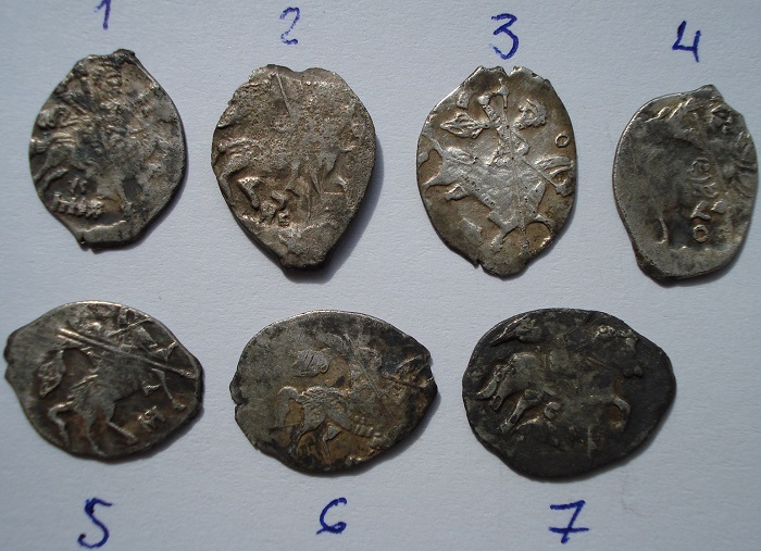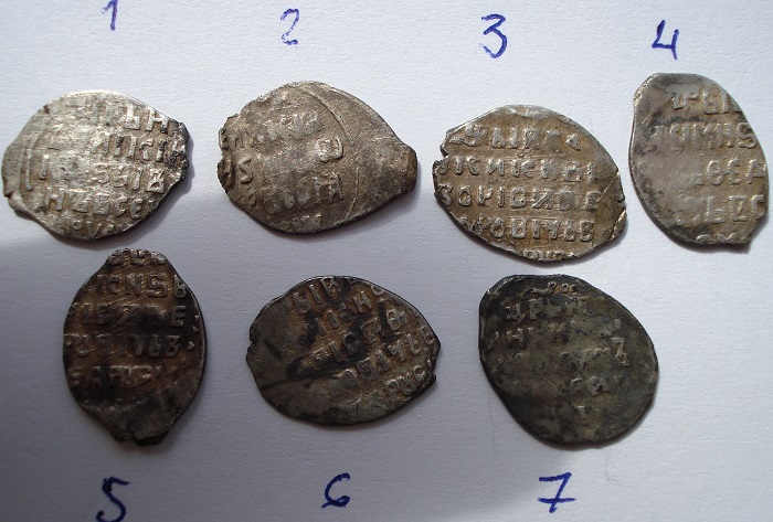QUOTE(MishanK @ May 11 2020, 09:07) Всех приветствую. Помогите определить монетки. Есть интересные? Вес от 0,62 до 0,67 гр. Моё почтение. 1. Новгородская копейка Ивана Грозного КГ90 (R9) 2. Новгородская копейка Федора Ивановича КГ111 3,5,6. Московская копейка Бориса Годунова КГ173 4. Московская копейка Бориса Годунова КГ163 7. Псковская копейка Ивана Грозного КГ93. Массовое и в не лучшем виде от 50 до 150р /шт. -------------------- Куплю комплексы чешуи 3х рублевой монетной стопы (от Ивана Грозного)