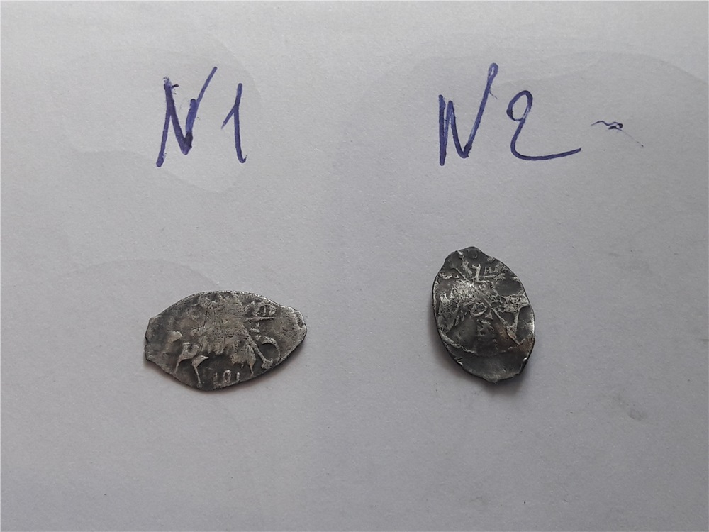 QUOTE(VasVek @ May 14 2020, 21:19) 1.Копейка Шуйского, КГ №265 2.Вроде как копейка Пётра I. Спасибо скажите на данное время имеет какую не будь ценность на аукционе. |