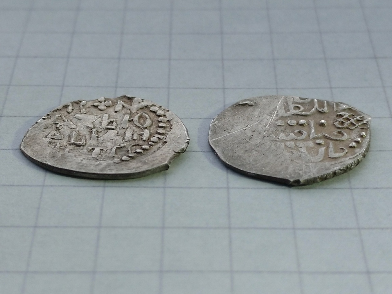 Добрый день! Прошу помощи в определении и оценке монеты Дмитрия Донского. Все, что нашел о ней - это анонимный чекан без имени Дмитрия. К сожалению, расширенной информации по анонимным чеканам обнаружить не получилось. Вес на китайских: 1.06 гр.