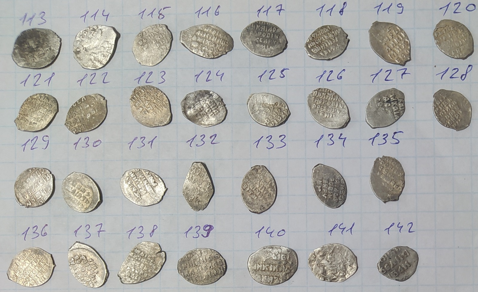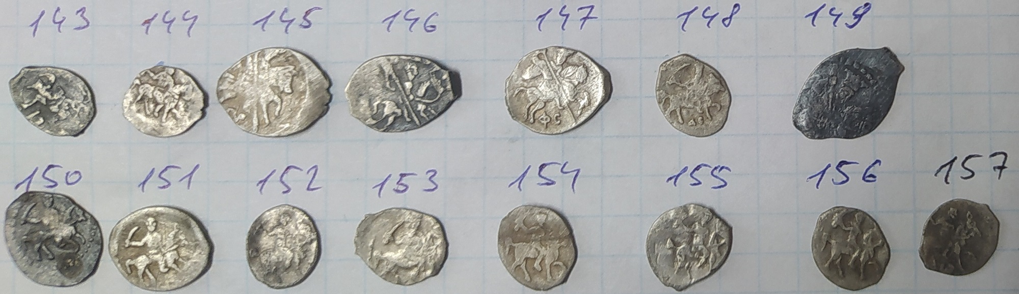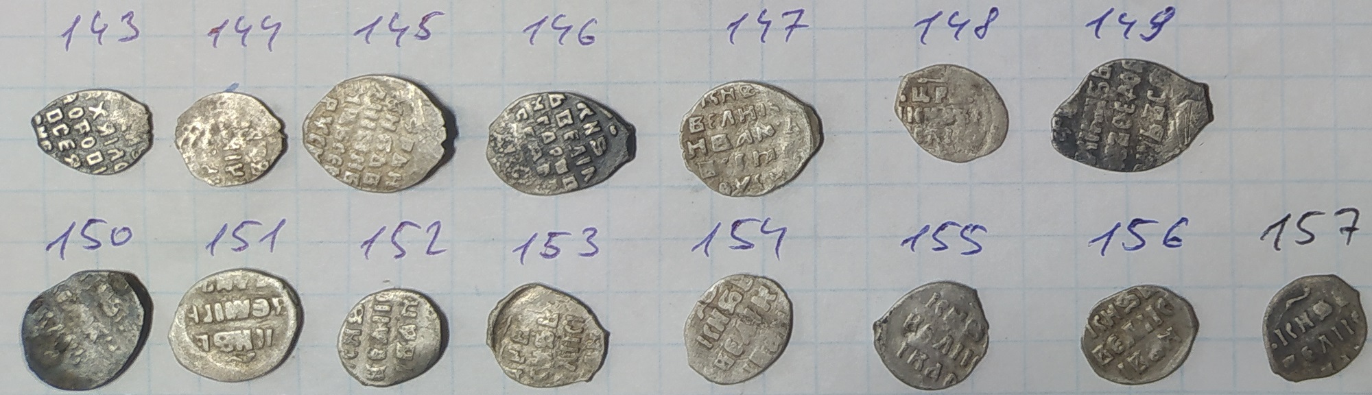QUOTE(Повстанецъ @ May 17 2020, 22:04) легенда. всё. 144 - более-менее не частая денежка Михаила КГ 697 (V), остальное на этом фото простое (копейки, деньги Грозного, по 1шт - московские копейки Бориса и Михаила) |