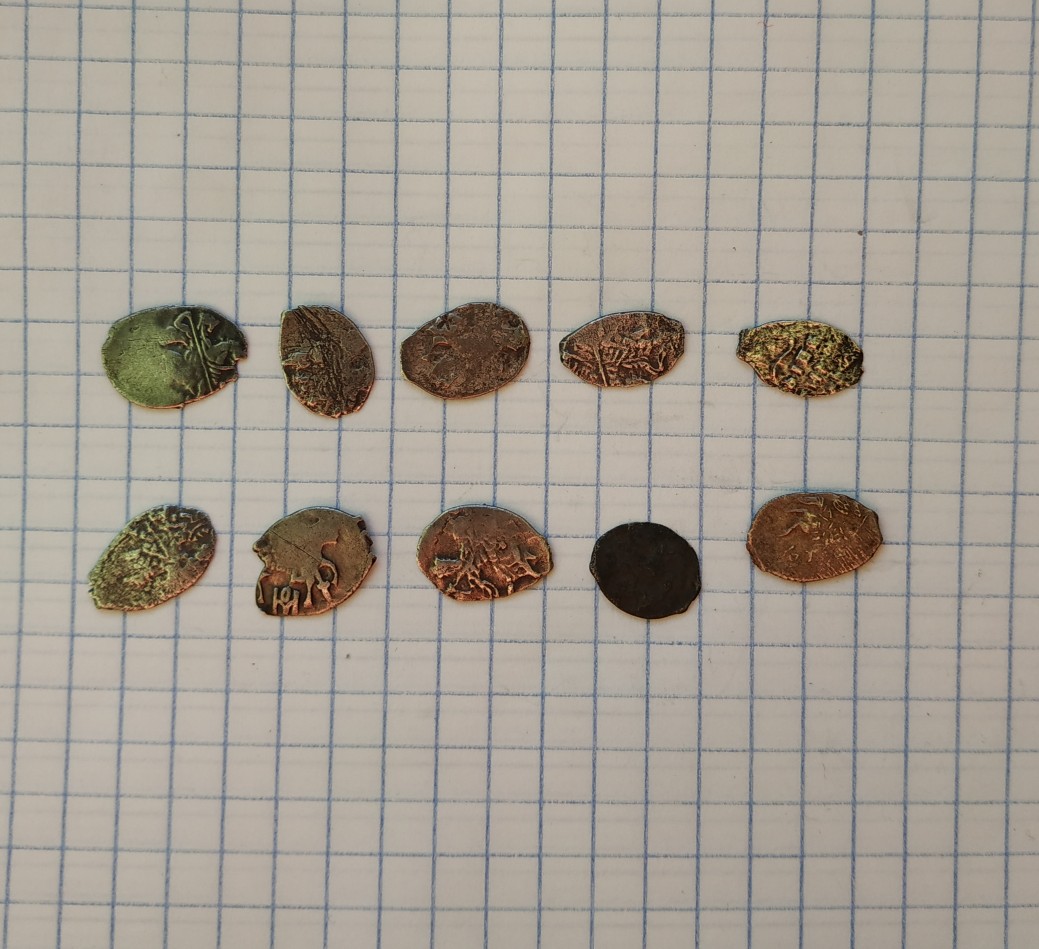 QUOTE(The Black Rider @ May 19 2020, 12:25) 1 - Петр, единоличное правление, Кадашевский двор, 1702-1704гг, 2 - он же, единоличное правление, Старый двор, 1696-1704гг, 4 - он же, копейка совместного правления. 3 - московская денежка Грозного, 5 - Михаил Федорович, новгородская копейка, 6 - он же, московская копейка. Все простое, примерно 30-40р штука. |