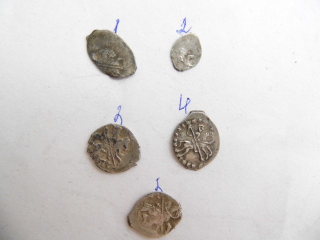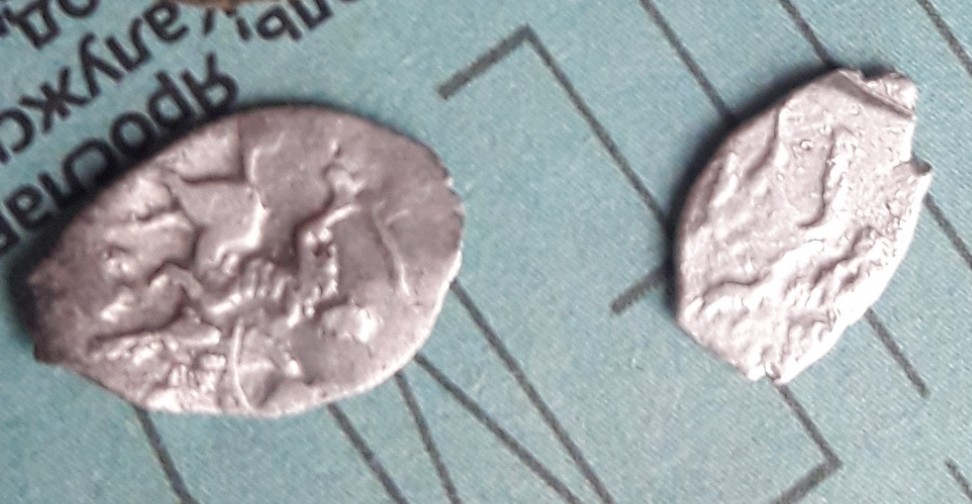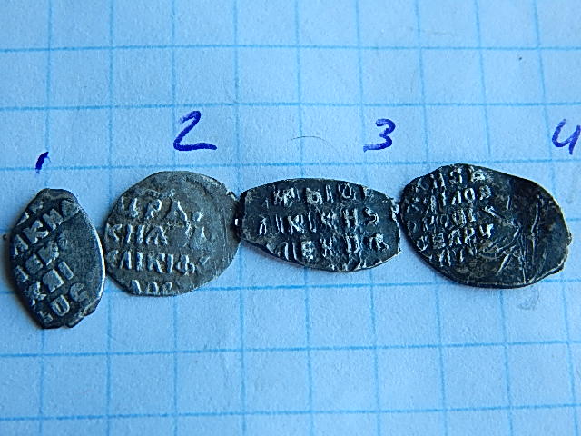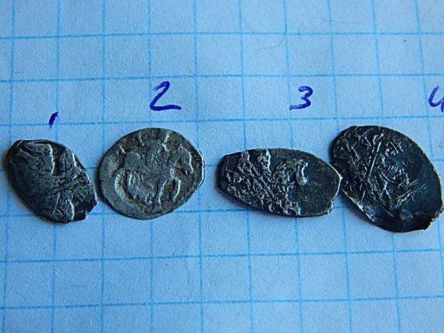 QUOTE(олег-ч @ Jun 28 2020, 11:26) Доброго времени. Подскажите по монеткам-может что интересное. 1-0.45гр. 2-0.30гр. 3-0.51гр. 4-0.44гр. 1,3 - Алексей Михайлович, 2 - денежка Федора Иоанновича, 4 - московская копейка Михаила. Пока что простые. |