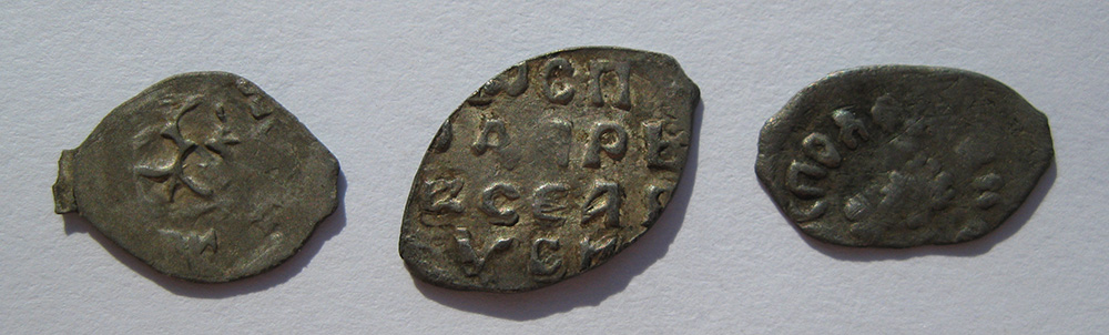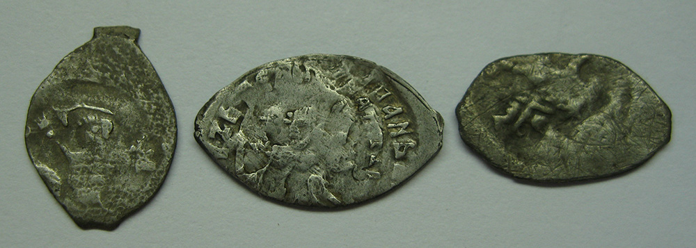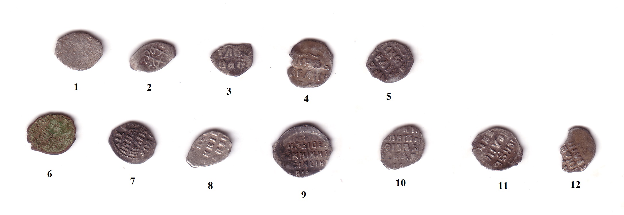 QUOTE(Werf @ Jul 7 2020, 11:10) День добрый! Не поможете в определении чешуи? 7 - не частая денежка Федора Ивановича КГ 106 2 - четверетца Василия 3го Остальное все простое (3.4,5,12 - московские деньги Грозного, 11 - его же тверская деньга, 8,10 - Петр, копейки Старого двора, 9 - в зависимости от веса - Шведская оккупация Новгорода (если вес около 0,55г, как скорее всего и есть), либо Новгородская копейка Шуйского (если вес примерно 0,68, что менее вероятно), 1.6 - неопознаваемые обмылки). |