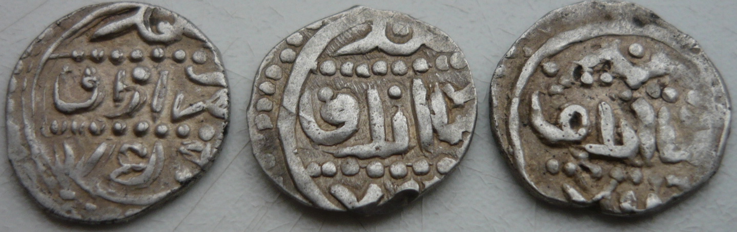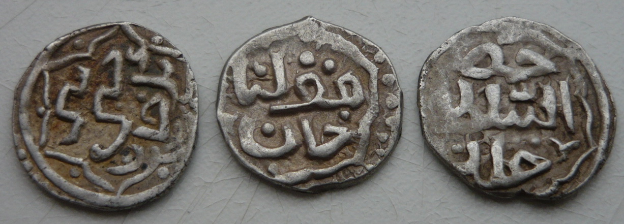 Данги монетного двора Азака. 1 - Бердибек (759 г.х.), 2 - Кульпа (760 либо 761 г.х.), 3 - Хызр (762 г.х.)