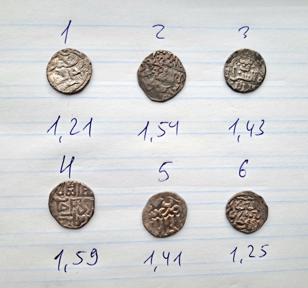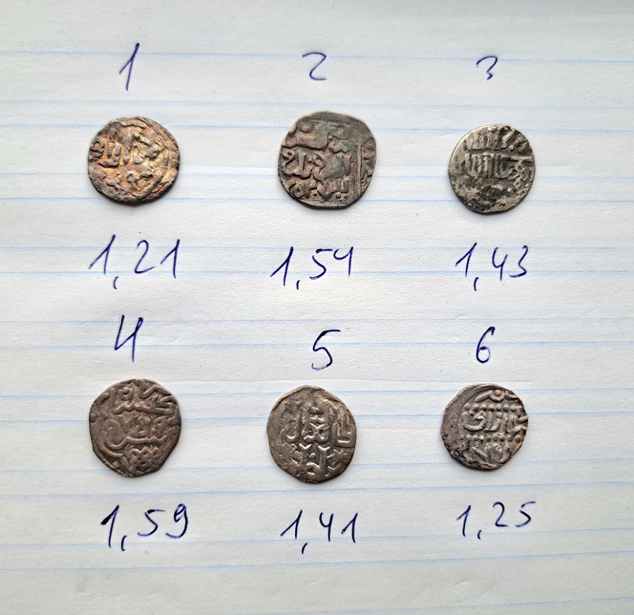 Вес слева направо 1 - 1.49 2 - 1.44 3 - 1.56 Спасибо за участие! [/quote] 1. Узбек чекан Сарая. 2. Узбек чекан Сарая. 3. Джанибек САД 746 г.х. |