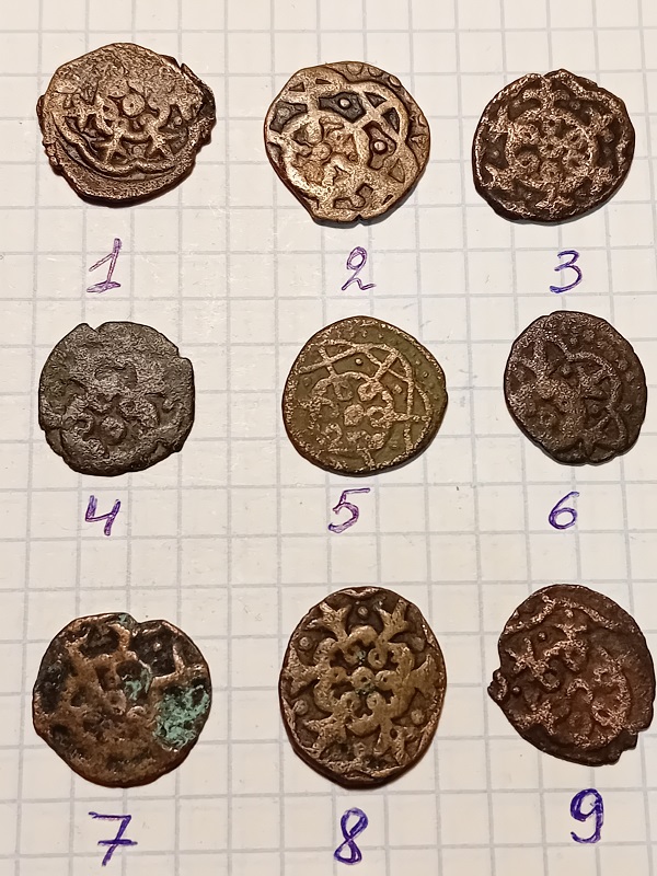 Благодарю Вас,уважаемый Тит! Меня удивил довольно схематичный вариант чекана этого типа данга. - Таких я находил сотни и тысячи держал в руках. Но,найдя этот,даже сразу не узнал. Очень сильно отличается от привычного и массового данга Узбека,Крым аль-Махруса, 720 г.х.