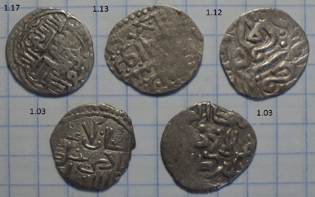 QUOTE(D.A.G. @ Sep 17 2024, 20:56) Добрый вечер! Помогите пожалуйста определить монеты: 1- вес 1,38 гр. 2- вес 0,67 гр. 3- вес 1,28 гр. 4- вес 1,24 гр. 5- вес 1,17 гр. 1. Данг Токтамыша, белед Сарай. 2 - 4. Подражания. 5. Тип данга Токтамыша Орду. Тоже подражание, наверное. -------------------- Специализация: джучидские данги от Тюляка до Ибака.