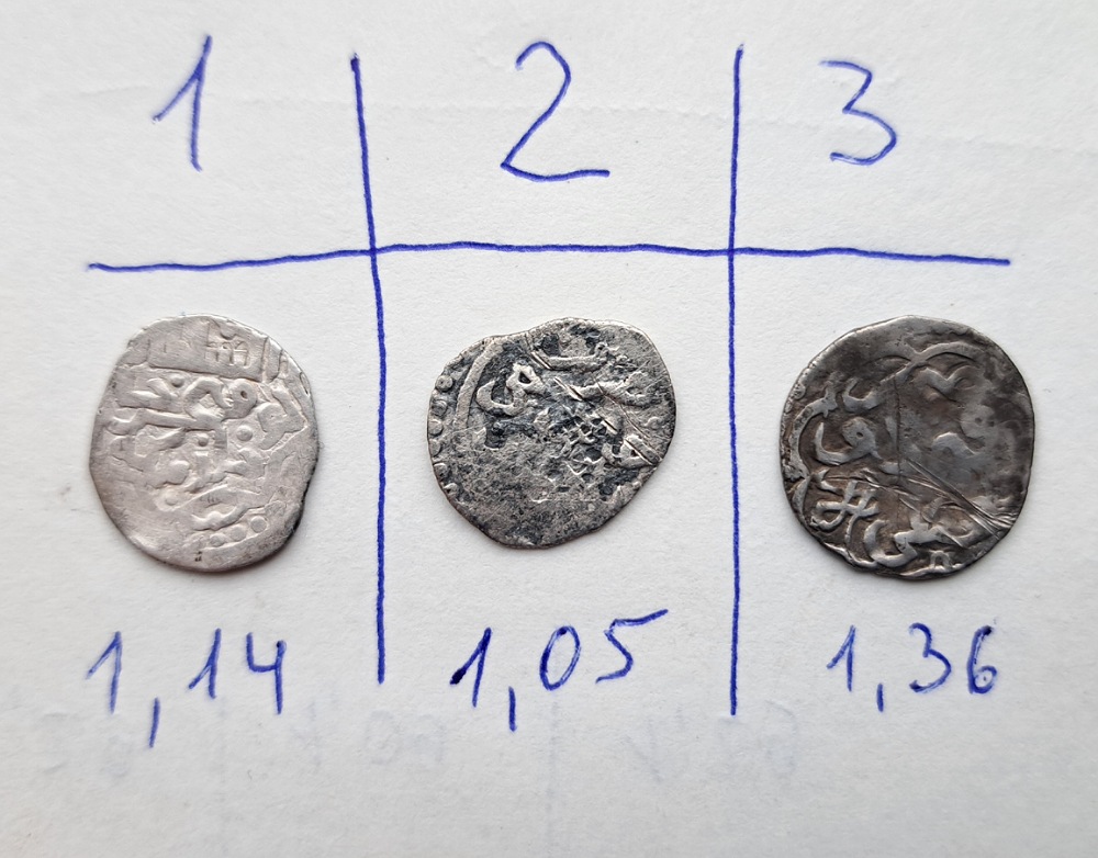 QUOTE(Trubadur @ Nov 18 2024, 13:43) Здравствуйте, помогите пожалуйста определить ханов и г.х, по возможности оценить. Заранее благодарен. С уважением. 1. Токтамыш Крым 796 гх 2. Пулад Хаджи-Тархан 3.Токтамыш Орду Муаззам тип 791гх Не дорогие, и состояние цены не прибавляет. 300-400р. за шт. Сделайте, пожалуйста фото крымском монеты отдельно с разрешением побольше. Можно в личку. Заранее спасибо. -------------------- СаД - Сарай аль Джадид