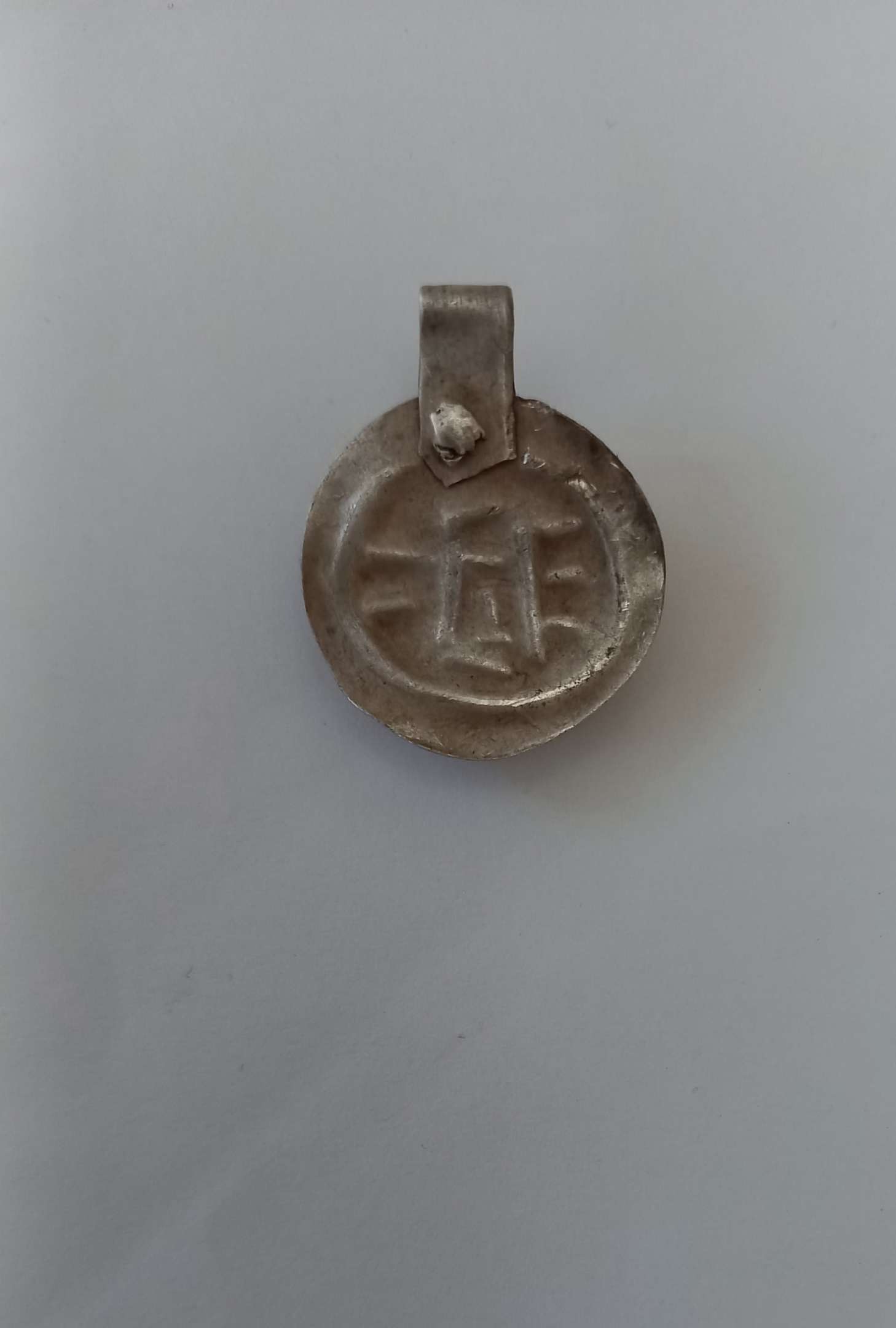 Доброго времени суток Уважаемые , прошу прошение что выложил это сюда просто больше не куда обратиться! На другом форуме сказали что подвеска сделана из дерхема и что начеканено на ней имитация под арабскую вязь только что написано не получилась прочесть (у меня ), другие предположения были что это имитация брактеата. Сможете пожалуйста помочь в данной ситуации ? с Уважением