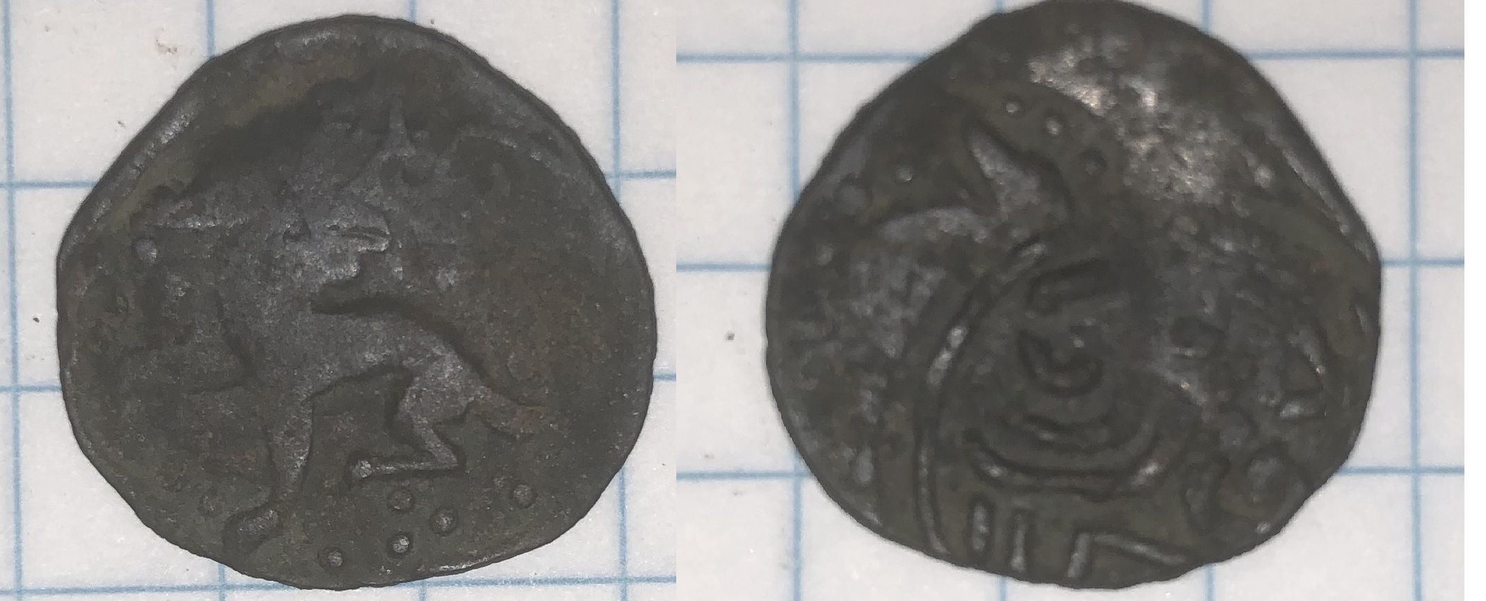 QUOTE(leonk @ Jan 7 2025, 21:29) Приветствую. Прошу помощи в атрибуции и оценке монеты, материал медь, найдена на Ставрополье.Кажется с двух сторон заяц. |