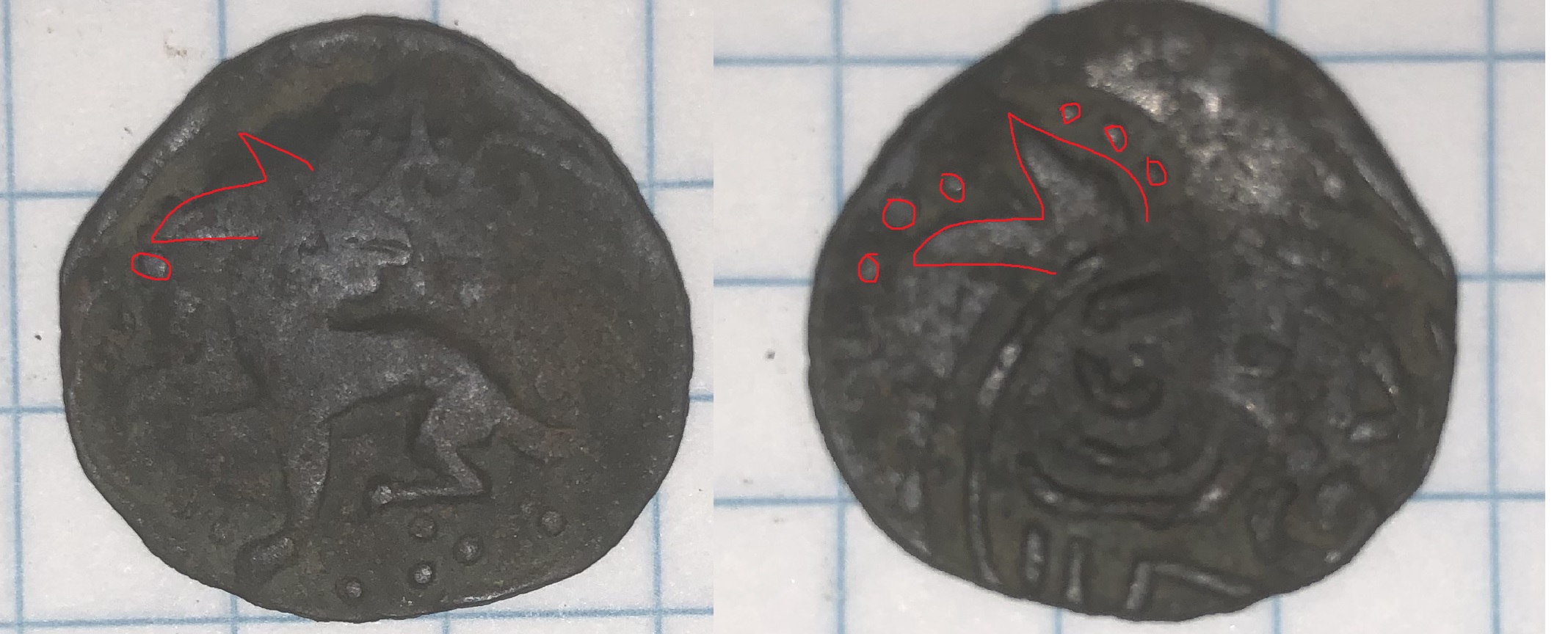 QUOTE(leonk @ Jan 7 2025, 22:29) Приветствую. Прошу помощи в атрибуции и оценке монеты, материал медь, найдена на Ставрополье. Пул времен правления Токтамыша. Данный реверс работал так же при чеканке серебряных дангов. Вложенные эскизы изображений -------------------- СаД - Сарай аль Джадид