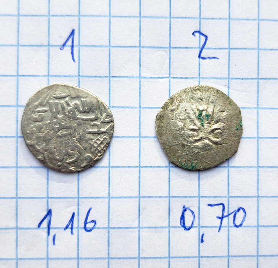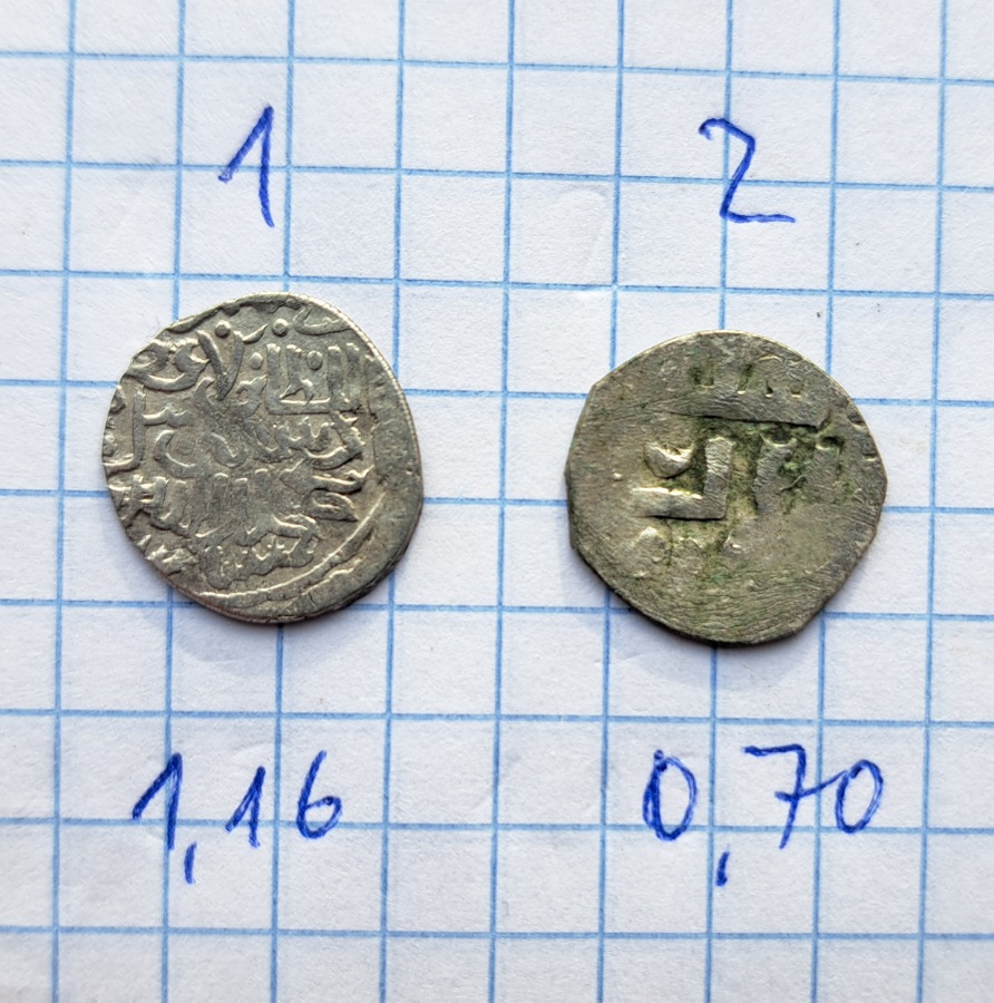 QUOTE(олег-ч @ Aug 23 2025, 10:21) Приветствую. Подскажите по монеткам, определение и оценка. Рязанская обл. вес 1(левая) - 1.05гр. 2 - 1.29 гр. Пулад Хаджи- Тархан Токтамыш Белед Сарай 782 гх -------------------- СаД - Сарай аль Джадид