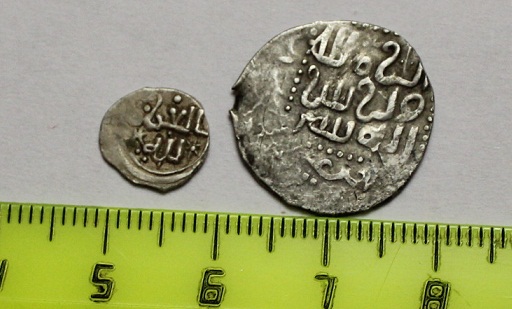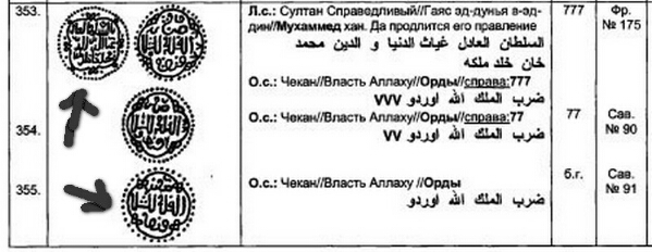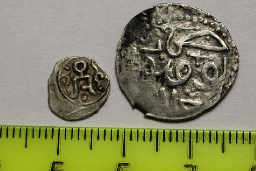 QUOTE(Docent @ May 27 2012, 19:33) Если у маленькой вес примерно 0.36-0.38, то это скорее всего фракция 1/4 сарайского дирхема 681 г.х. Большая - Токта, Сарай, 694 г.х.. ЗЫ А позвонить, сложно? Уважаемый Docent большое спасибо за определение |