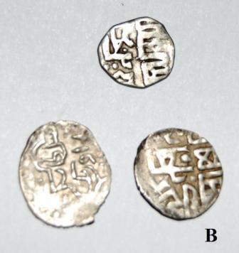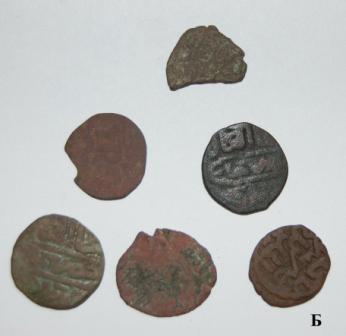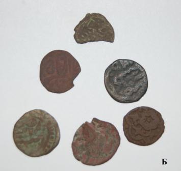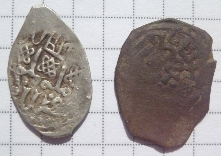 QUOTE(Chieф @ Jun 22 2012, 10:04) Здравствуйте. Подскажите по монеткам. Веса: 0,87 гр., и 1,50 гр. Найдены в Нижегородской области. Обе русские монеты 1. СНВК деньга времени ВД, подражание на обеих сторонах 2.думаю подражание пулу, вылетали такие вместе с городецкими пулами |