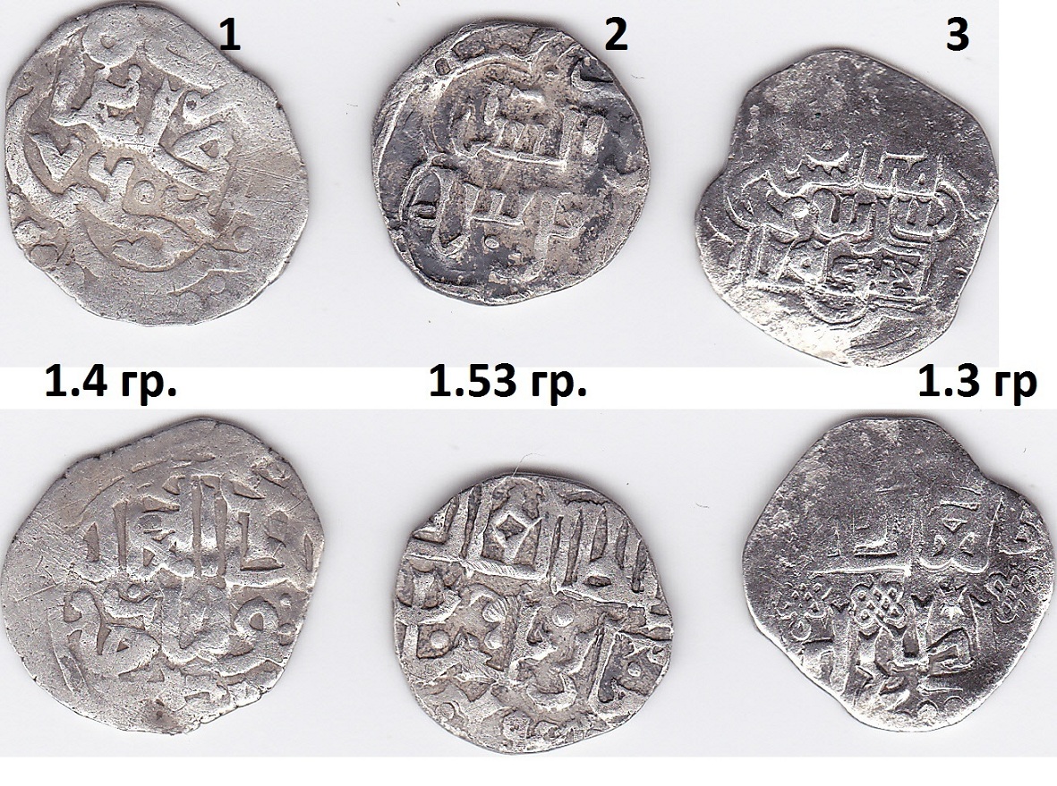 QUOTE(Серый Серега @ Jul 23 2012, 19:47) Добрый вечер определение и оценка За ранее благодарен Думаю так, 1. Тохтамыш, Хорезм, 787, простая 2. Тохтамыш, Орда, простая 3. Джанибек, Сарай Новый, 748, простой 4. Джанибек, Сарай Новый, 74х, простой 5. подражание 6. Тохтамыш, Азак, 782, простой 7. Пулад, Хаджи Тархан, простой 8. Шадибек, двор? 9. Мухаммад, Орда, простой 10. Абдаллах, Азак, 765, простой 11. Хызр, Гюлистан, 761, простой 12. Шадибек, Каффа Новая, 809, простой Остальное - одноштемпельные подражания из говнобра, скорее всего местное производсто, их и нашли по месту производства, в количестве находят в верхнем течении Оки от Калуги до Серпухова и Коломны. |