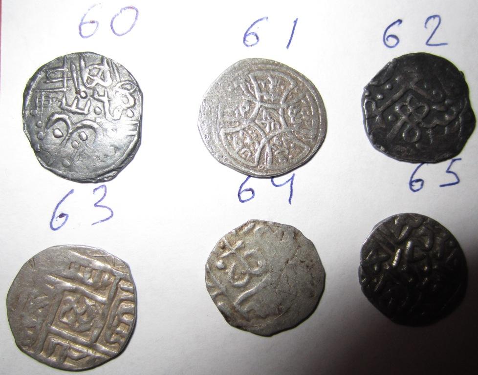 QUOTE(юрий.k @ Sep 27 2012, 21:50) Доброго времени суток, и вновь я к вам за помощью, подскажите по монеткам, вес 1.42 1.46 1.37 гр. зарание благодарю за ответы с уважением Юрий. Я так понял 1 фото и 6 одна монета? Как по мне подражание под Токтамыша Джанибек 748г.х. |