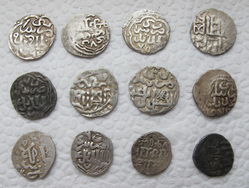 Это дирхемы (данги) золотоордынского периода, с именами правителей Улуса Джучи, 14 век.