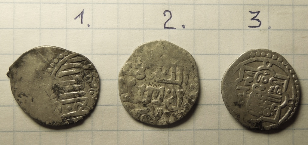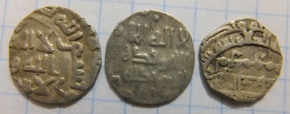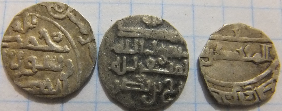 QUOTE(М Шульжинский @ Oct 22 2012, 20:55) Добрый вечер.Прошу определить три дирхема.Спасибо за помощь. 1 - подражание дирхаму Х в. 2 - Саманиды, Нух б. Наср, Самарканд, 331-333 гг.х. 3 - Аббасиды, ал-Муктадир биллах, Мадинат ас-Салам, хх7 г.х. |